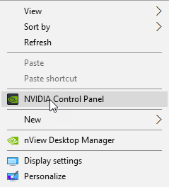 1) With your mouse, right-click the Windows desktop and select NVIDIA Control Panel as shown in the image below. This will launch the NVIDIA Control Panel.